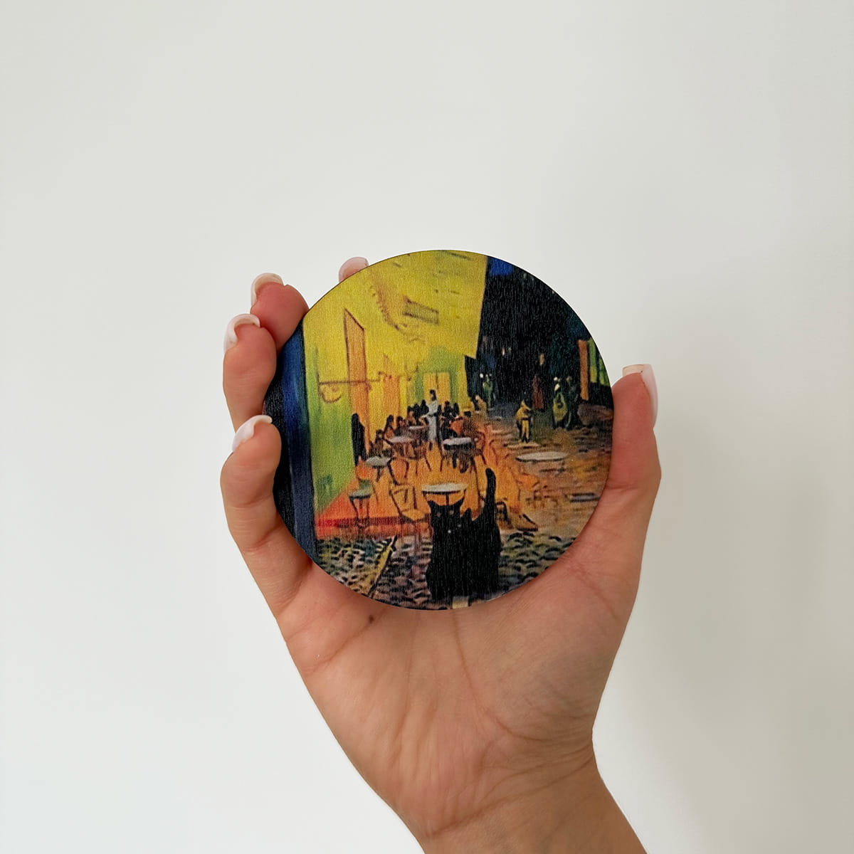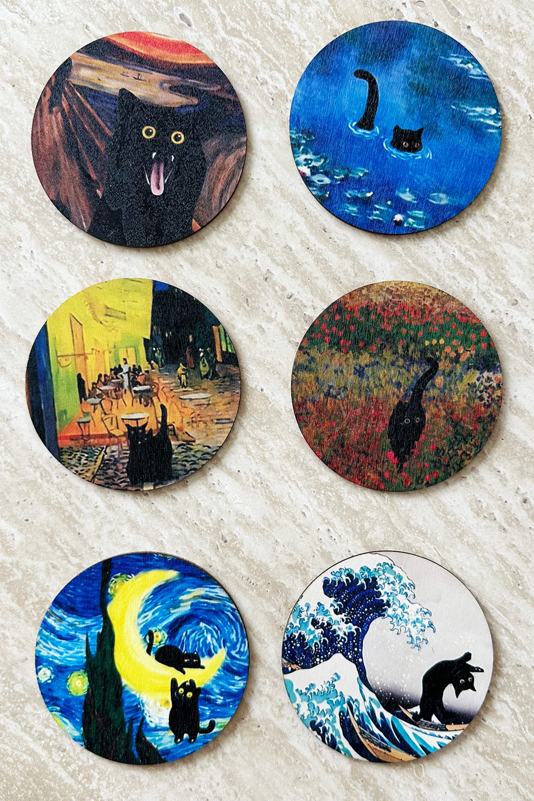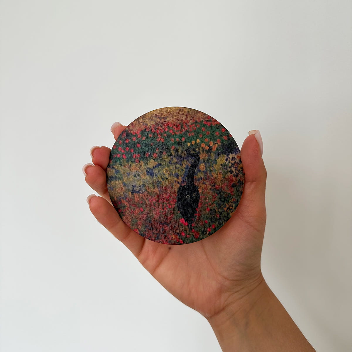 Každý podtácek byl vyroben z přírodního dřeva a ozdoben ručně malovanou kočkou, což zaručuje, že žádné dva nejsou stejné. Jemné, ale výrazné ilustrace se dokonale hodí k modernímu i klasickému stolování. Jedná se o malé umělecké dílo, které potěší vaše hosty a zpříjemní každodenní chvíle u kávy nebo čaje.