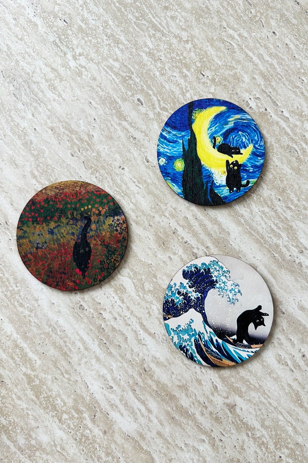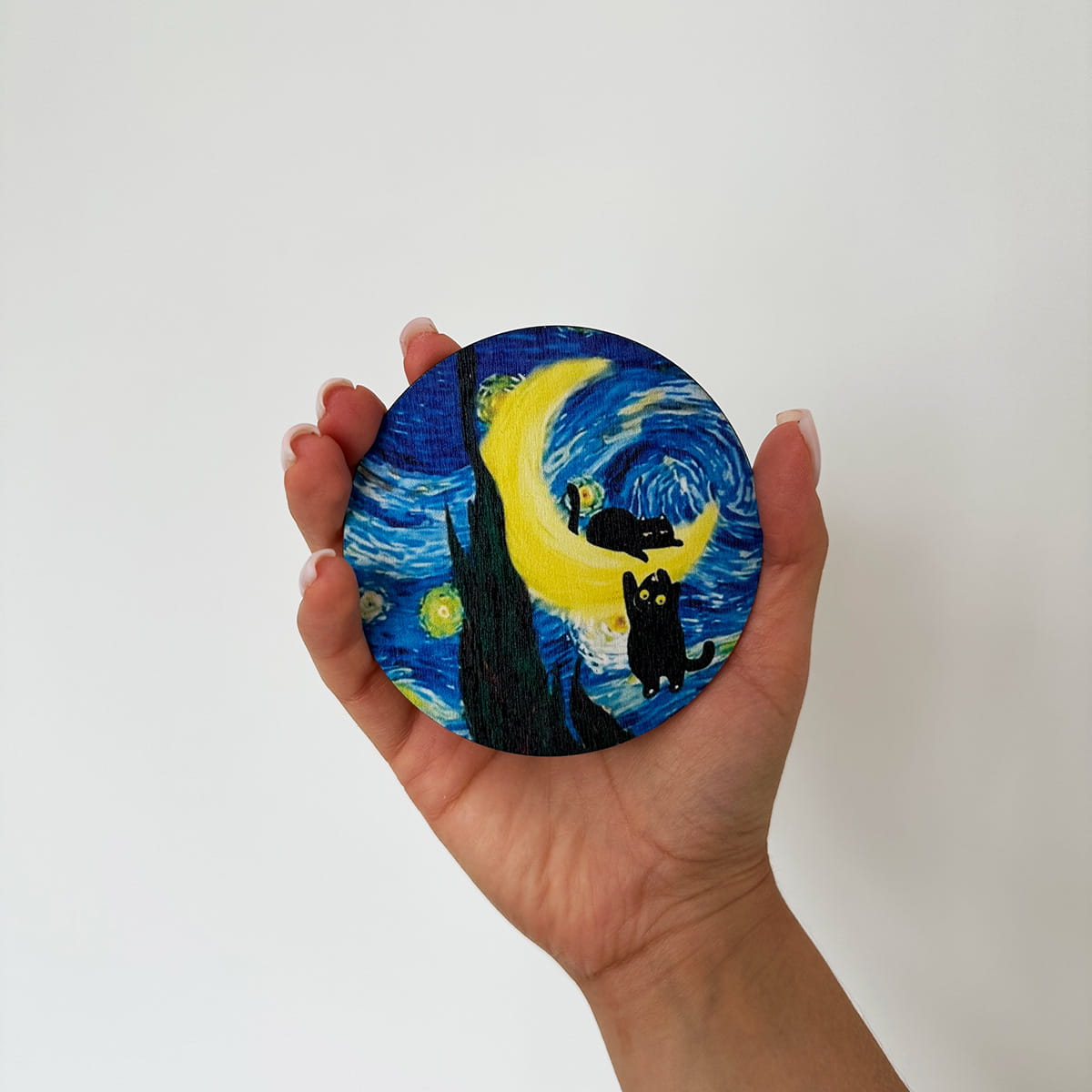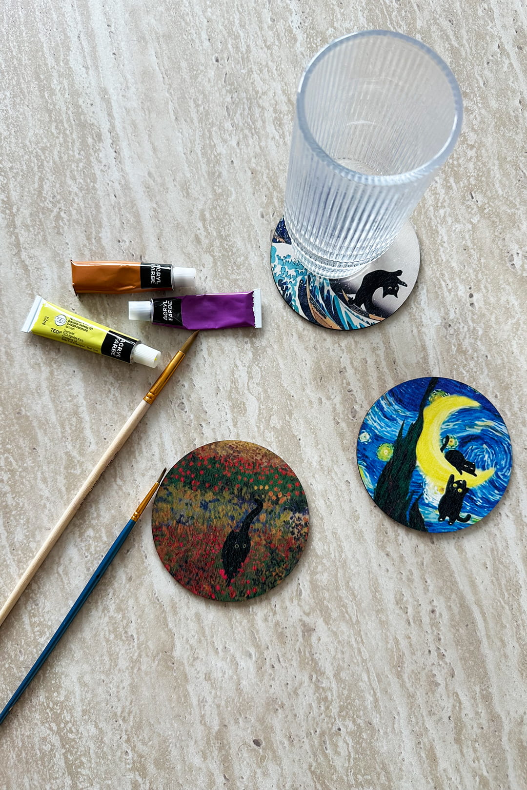 Dřevěné podšálky pod hrnky s ručně malovanými kočkami